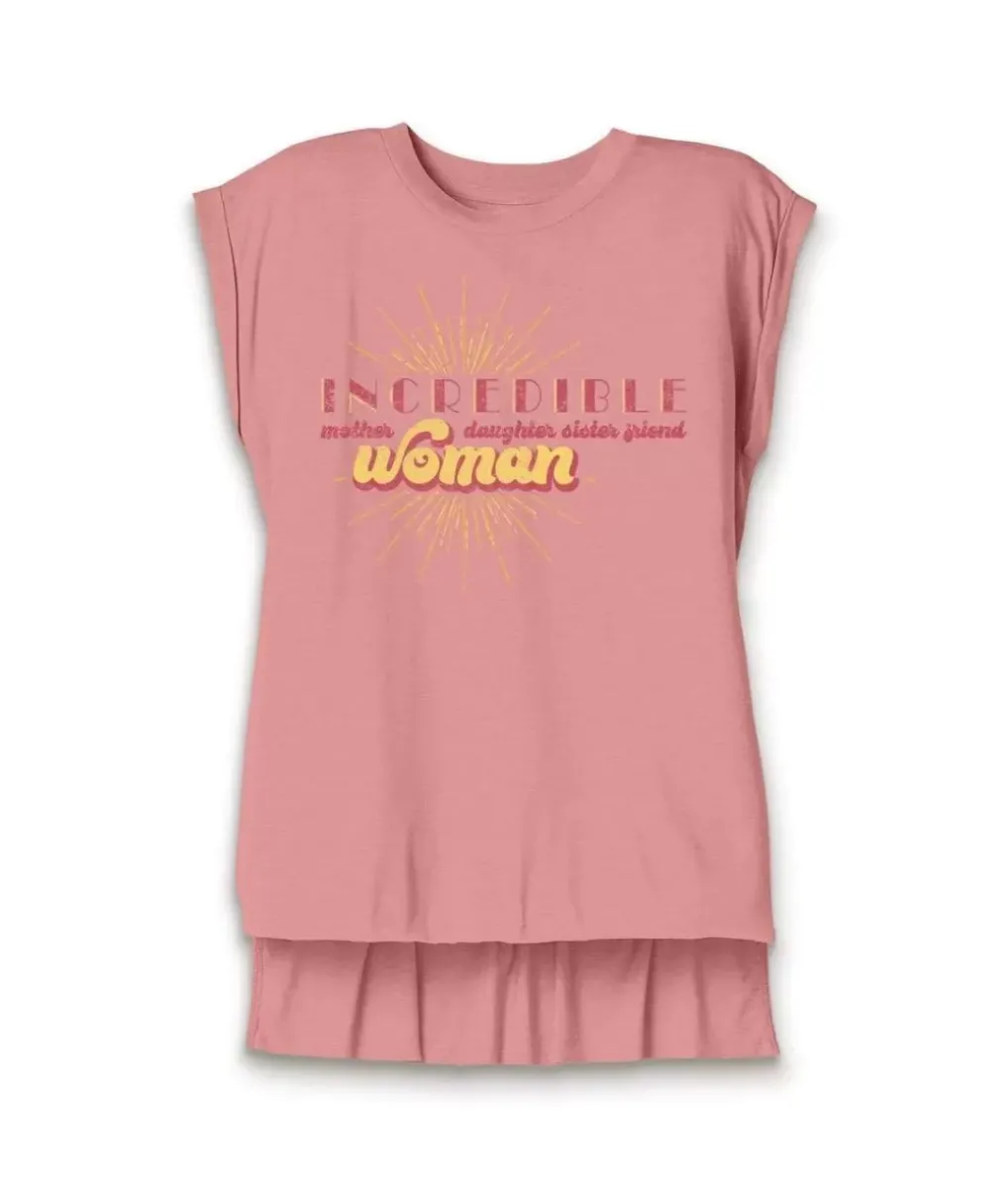 Online Nayked Apparel Women’S Ridiculously Soft Flowy Rolled Cuffs Graphic Muscle Tee | Incredible Woman